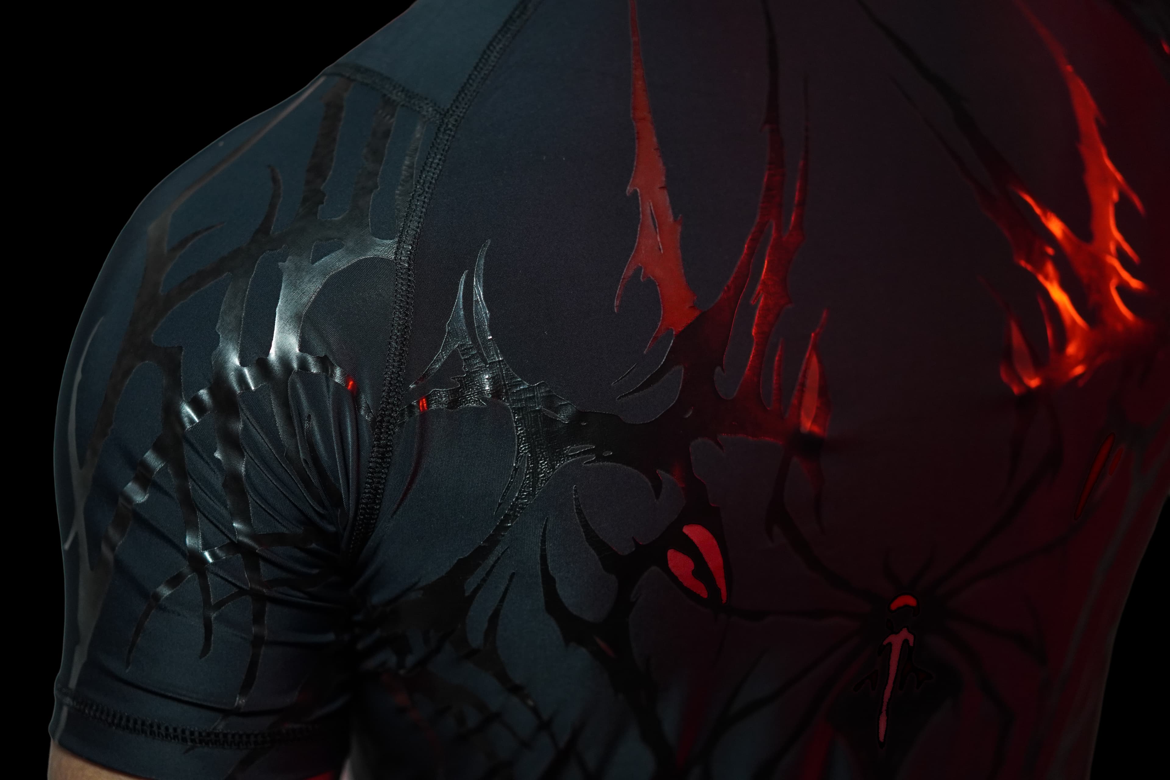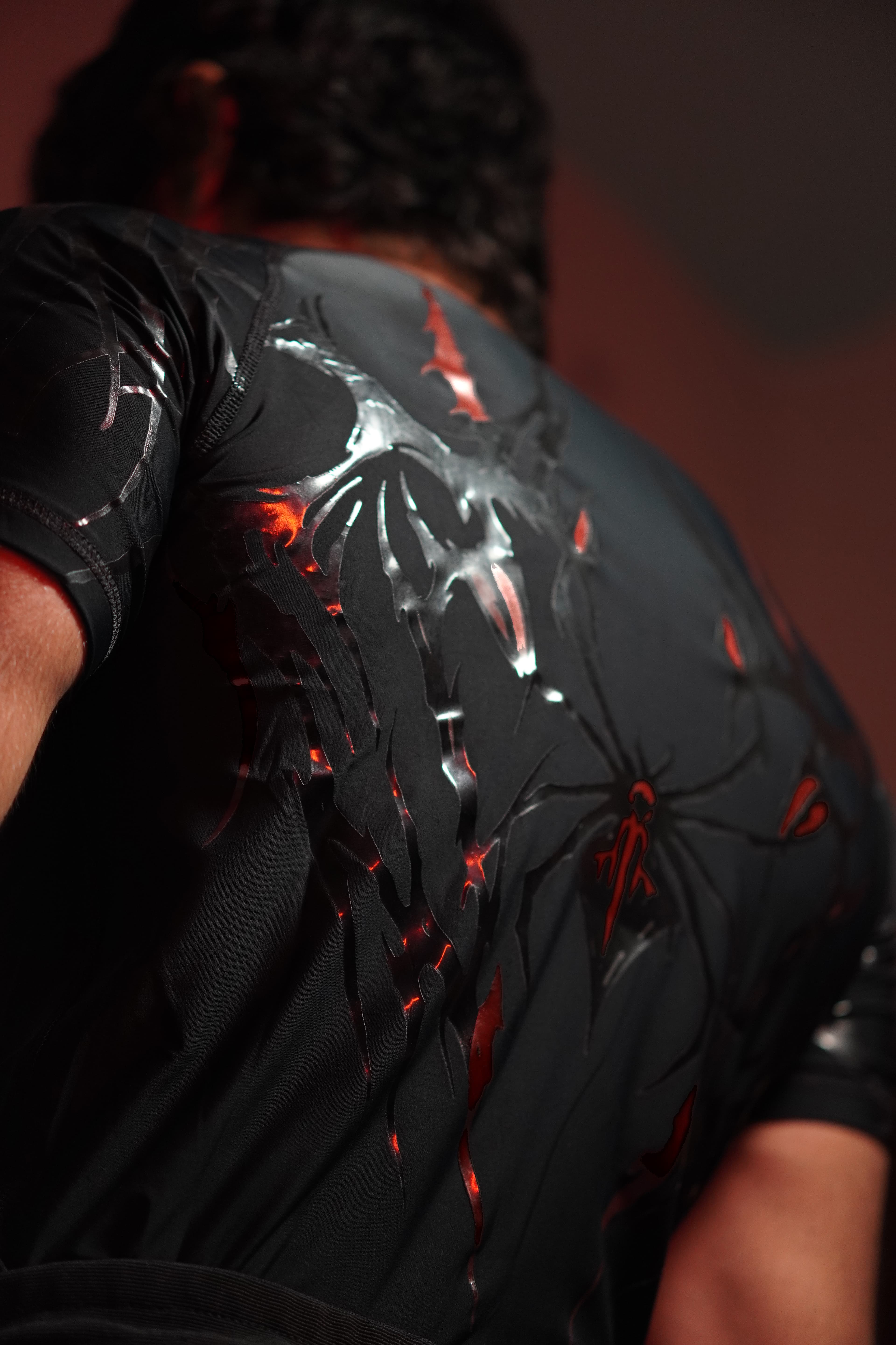 This is what happens when you mix dark aesthetics with explosive energy. The "Lava-Web" shirt is designed to look like it's barely containing the power within.